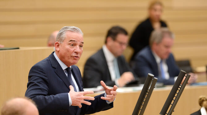 Innenminister Thomas Strobl (CDU) spricht bei der Stadtkreis-Debatte für die Landesregierung.