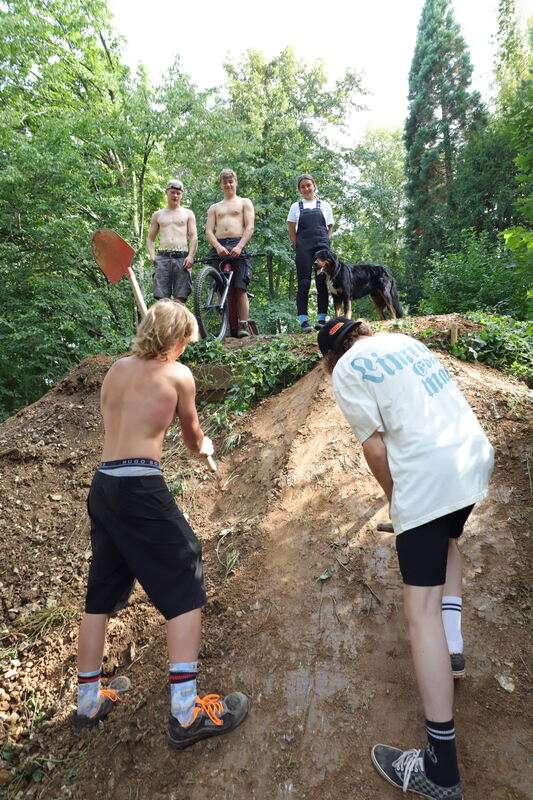 Entstanden ist der Mountainbike-Park in den vergangenen drei Jahren unterhalb des Pfullinger Schützenhaus. Er bietet den jugendlichen die Freiheit zu fliegen und er lässt ihnen die Freiheit, immer weiter daran zu bauen. »Noch steiler, noch geiler«, sagt Philipp Klink mit leuchtenden Augen und nacktem Oberkörper, kurzer Hose und stabilem Schuhwerk. Schaffig hat alles auch angefangen, damals 2019.