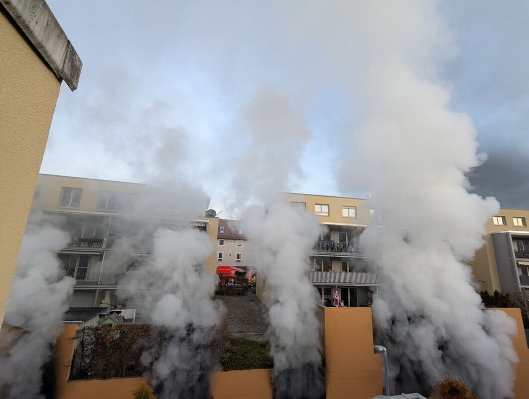 Starke Rauchentwicklung bei dem Feuer in der Tiefgarage der Pfullinger Hermannstraße.