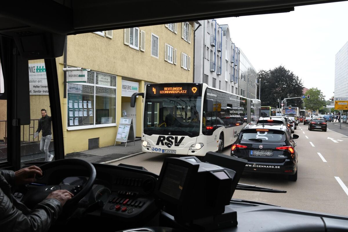 Stau auf der Gartenstraße. Der Quartiersbus braucht vom Burgplatz zum Listplatz 12 Minuten.