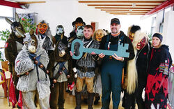 Nehrens Bürgermeister Egon Betz übergibt den Rammert-Wölfen den Rathausschlüssel.