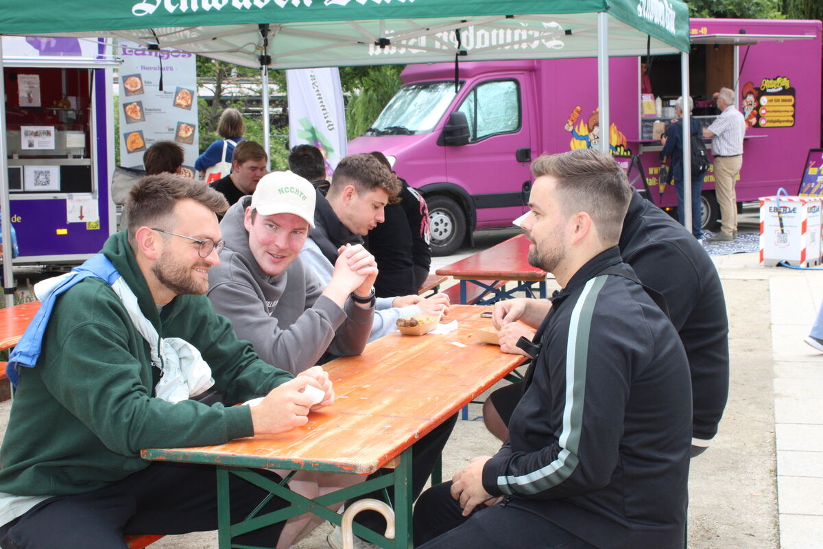 Am Samstagmorgen wurden noch die Regentropfen der Nacht weggewischt. Dann gab es Streetfood aus aller Welt zu genießen, bevor am Nachmittag Regen einsetzte. Die Anbieterinnen und Anbieter vertrauen dem Reutlinger Publikum trotzdem. Kontraproduktiv war der Regen allerdings eine Zeitlang für den Skaterwettbewerb. Glücklicherweise hatten viele mittags schon begonnen, ihre Tricks zu zeigen.