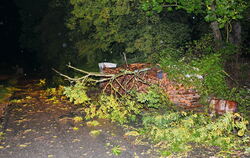 Mit der Kettensäge rücken Mössinger Feuerwehrmänner einem Baum in der Stadtmitte zu Leibe.