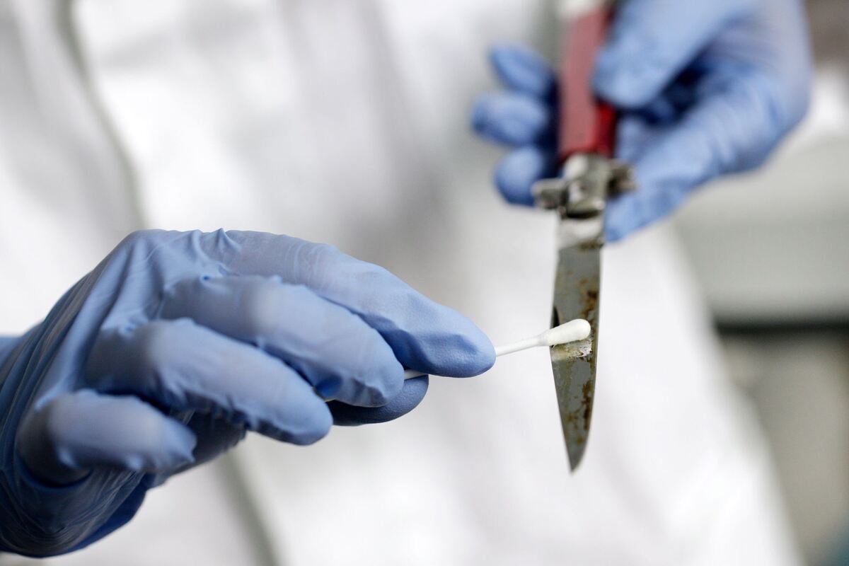 Ein Kriminaltechniker mit einem Messer (Archivbild)