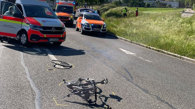 METZINGEN. In Metzingen ist es am Montagnachmittag gegen 16.25 Uhr zu einem schweren Unfall gekommen. Ein 71-jähriger Rennradfahrer wollte nach Angaben einer Polizeisprecherin von der Friedrich-Münzinger-Straße nach links auf die Nordtangente abbiegen. Dabei hat er die Vorfahrt eines von links kommenden Fiat Punto missachtet. Obwohl der Autofahrer noch versucht habe zu bremsen und auszuweichen, sei es zum Zusammenstoß gekommen, so die Polizeisprecherin.