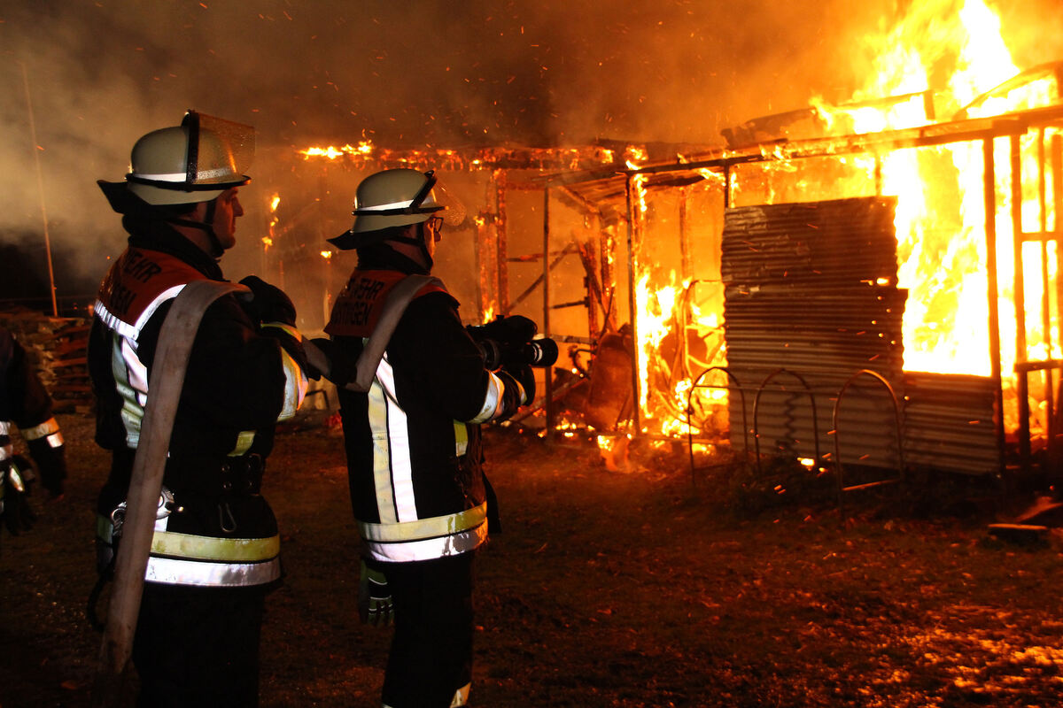 ENGSTINGEN/REUTLINGEN. Die Polizei Reutlingen hat dem GEA am Vormittag neue Einzelheiten zum Großbrand von Großengstingen mitgeteilt. Demnach ist eine 120 Quadratmeter große Scheune durch das Feuer komplett zerstört worden. Auch ein Traktor wurde Raub der Flammen. Menschen und Tiere wurden nicht verletzt. Anwohner konnten zwei Pferde vor dem Großfeuer in Sicherheit bringen und sie auf eine Weide bringen. Das Gebäude wurde auch als Pferdestall genutzt. Am Samstagabend gegen 20.30 Uhr hatten Anwohner das Feuer bemerkt und Alarm geschlagen. Es kam zu einem Großeinsatz für die Engstinger Feuerwehr. Das komplette Engstinger Feuerwehrteam aus allen drei Ortsteilen der Gemeinde war im Einsatz. Unterstützend waren noch Feuerwehrleute aus Pfullingen mit Fahrzeugen am Brandort. Das DRK Engstingen-Hohenstein war mit fünf Fahrzeugen und zwölf Helfern vor Ort. Ein großes Problem war die Wasserversorgung, weil der Wasserdruck ständig nachließ. Die Polizei schätzt den Schaden an Gebäude und Geräten auf etwa 50.000 Euro. Die Brandursache ist noch unbekannt. Die Spurensicherung hat ihre Arbeit aufgenommen. (lpt/rr/GEA)