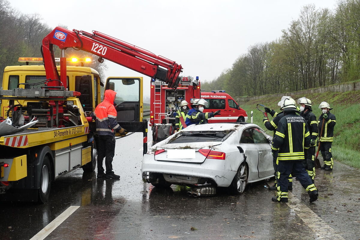 Am Ende einer leichten Rechtskurve kam er ohne Beteiligung anderer Verkehrsteilnehmer wegen seiner nicht angepassten Geschwindigkeit und deutlich unter der zulässigen Grenze abgefahrenen Reifen auf der regennassen Fahrbahn zunächst nach rechts von der Fahrbahn ab. In der angrenzenden Böschung überschlug sich der Audi mehrfach, bevor er auf dem Dach zum Liegen kam.