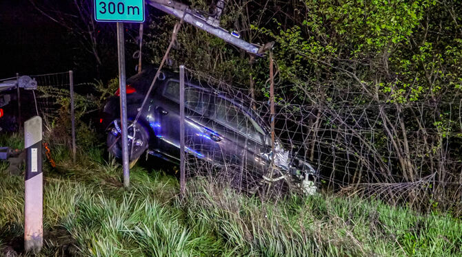 Die Bergung des Fahrzeugs durch ein Abschleppunternehmen gestaltete sich aufgrund der örtlichen Gegebenheiten schwierig, weshalb die Bundesstraße in Fahrtrichtung Tübingen zwischen 2.30 bis 4.30 Uhr voll gesperrt werden musste. Der entstandene Totalschaden am Fahrzeug wird auf circa 10.000 Euro geschätzt, der Schaden am Wildzaun liegt bei etwa 1.000 Euro. Die Unfallverursacherin wurde mit leichten Verletzungen in ein Krankenhaus eingeliefert. Im Einsatz waren die Feuerwehr, der Rettungsdienst und die Straßenmeisterei sowie mehrere Streifenwagen der Polizei. (pol)