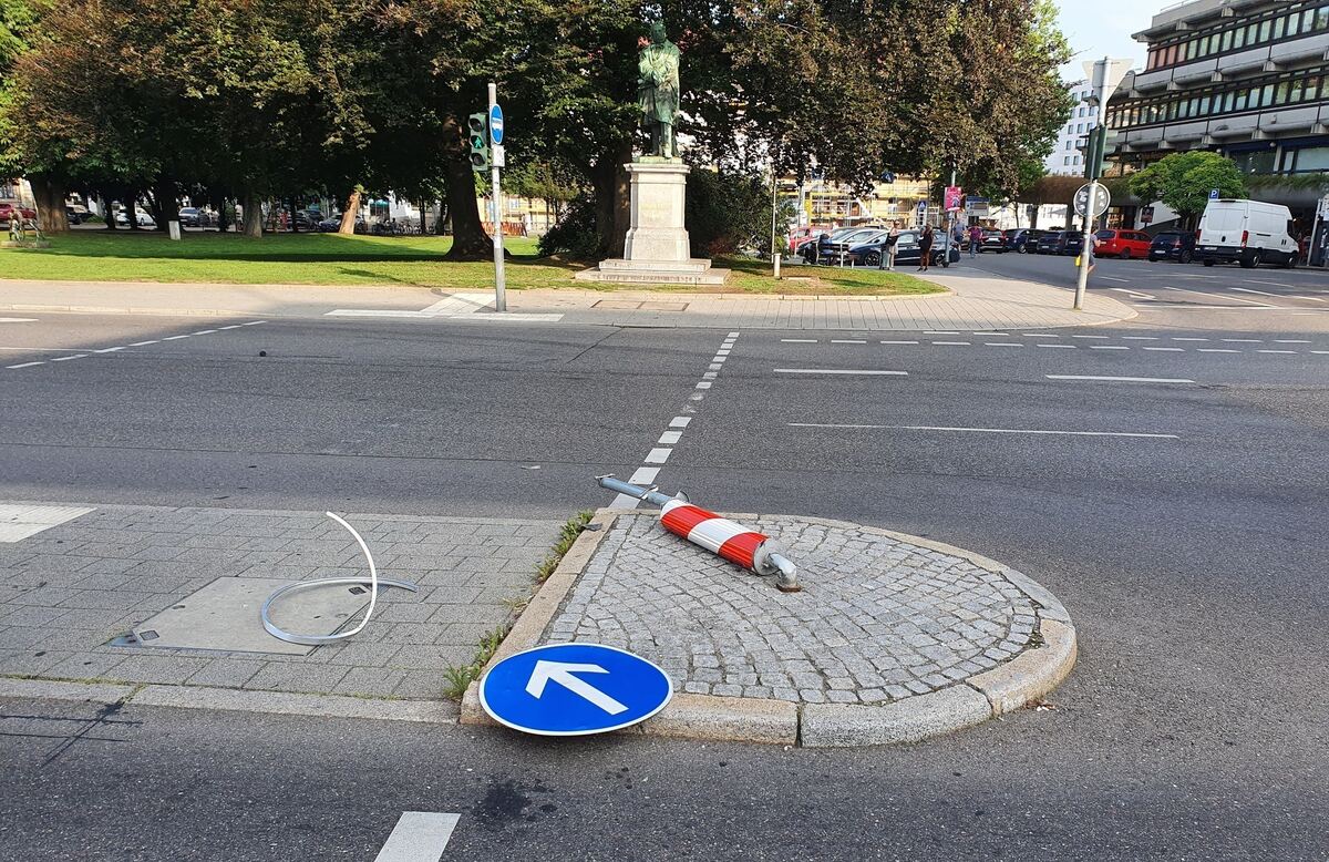Autofahrerin »rasiert« Verkehrsinsel in Reutlinger Karlstraße und braust davon