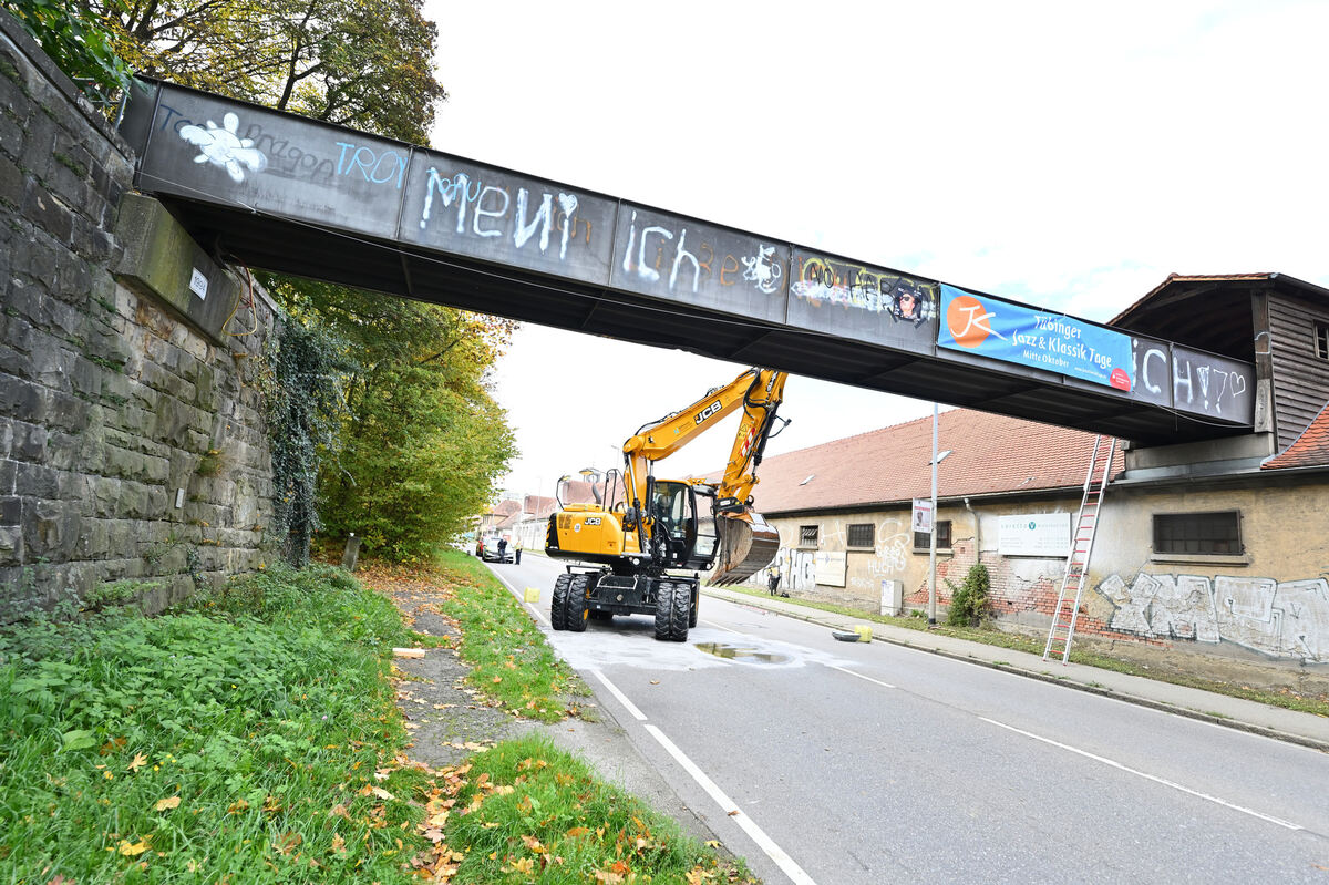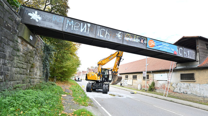TÜBINGEN. Ein Bagger ist am Dienstagmorgen in der Stuttgarter Straße in Tübingen an einer Fußgängerbrücke hängengeblieben und hat diese aus der Verankerung gerissen. Ein 43-Jähriger war laut Polizei gegen 8.45 Uhr mit der Baumaschine auf der B27 in Richtung Stadtmitte unterwegs. Da der Baggerarm zu weit nach oben ausgefahren war, prallte er damit gegen eine Fußgängerbrücke, die über die Stuttgarter Straße führt. Anschließend verkeilte sich das Arbeitsgerät zwischen der Brücke und der Straße.
