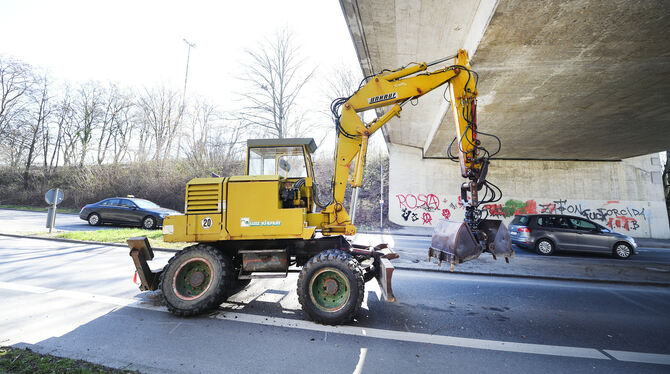 REUTLINGEN. Zu hoch für die reibungslose Durchfahrt: Ein 38-jähriger Baggerfahrer ist am Dienstagmorgen um kurz vor 10 Uhr mit seinem Gefährt an der Brücke über die Sondelfinger Straße hängen geblieben, weil der Baggerarm zu weit nach oben ausgefahren war. Durch die Wucht des Aufpralls brach die Hinterachse des Baggers und er blieb zunächst stecken. Ein Vertreter der Stadt sei vor Ort gewesen und habe entschieden, dass der Bagger abgeschleppt werden könne, sagt Polizeisprecher Michael Schaal. Der Abschleppdienst sei um kurz vor 12 Uhr eingetroffen. Zur Bergung musste der Bagger mit einem Kran auf einen Tieflader gehievt werden. Während der Aktion war die Sondelfinger Straße nur einspurig befahrbar. Der Fahrer zog sich leichte Verletzungen zu und musste vom Rettungsdienst in eine Klinik gebracht werden. Der Schaden an dem Bagger wird auf 7.500 Euro geschätzt. An der Brücke war augenscheinlich nur geringer Schaden entstanden. (GEA/pol)