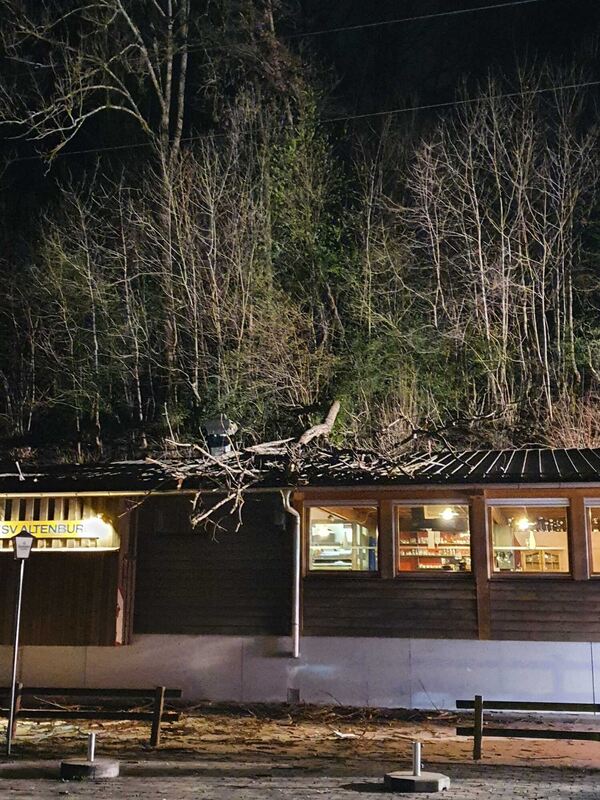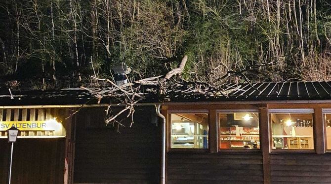 REUTLINGEN-ALTENBURG. Ein umgestürzter Baum hat am Mittwochabend zum Einsatz der Rettungskräfte in der Straße Im Neckartal geführt. Gegen 20.20 Uhr waren die Einsatzleitstellen von Feuerwehr und Polizei alarmiert worden, weil an der Örtlichkeit ein Baum umgestürzt und auf das Dach einer dortigen Gaststätte gefallen war. Zudem soll auch die Stromleitung in Mitleidenschaft gezogen worden sein, was zu einem kurzzeitigen Stromausfall in Altenburg geführt hat.