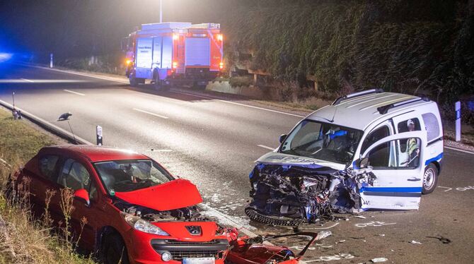 Nach Polizeiangaben war ein Überholmanöver unfallursächlich. Ein 37-Jähriger fuhr demnach mit seinem Kleintransporter aus Richtung Unterhausen kommend in Fahrtrichtung Reutlingen. Im Bereich der Einmündung zur Klosterstraße überholte er eine Fahrzeugkolonne und fuhr anschließend einfach auf der linken Spur weiter. Ein erstes Auto, das ihm entgegenkam, konnte gerade noch noch so ausweichen. Eine 57-jährige Frau, die in einem Kleinwagen unterwegs war, schaffte das nicht mehr. Es kam zur Frontalkollision.