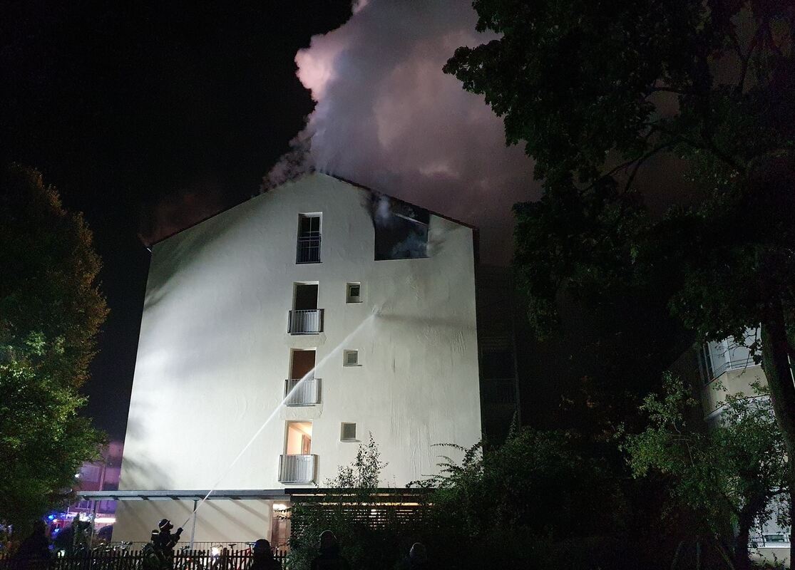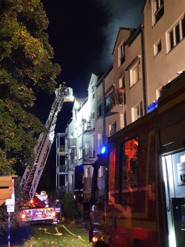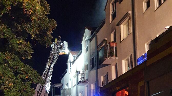 Bei Eintreffen dieser konnten Flammen und dichter Rauch aus dem Gebäude beobachtet werden. Ein 65-jähriger Bewohner konnte schwer verletzt durch die Feuerwehr aus dem Dachgeschoss gerettet werden. Weitere Bewohner des Hauses mussten ebenfalls mittels Drehleiter evakuiert werden.