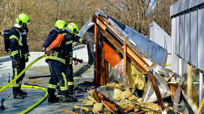 Während dem Verlegen von Dachpappe mit einem Schweißgerät fing die Isolierung des Dachs kurz vor zehn Uhr an zu schmoren, weshalb alle Kinder von den Betreuerinnen ins Freie gebracht wurden.