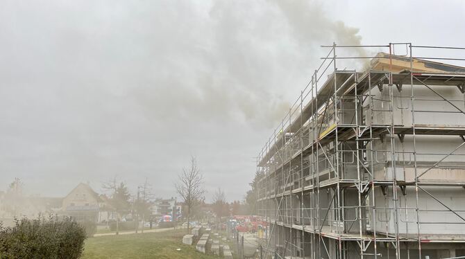 DUSSLINGEN. Ein Haus in der Dußlinger Ortsmitte hat am Montagnachmittag gebrannt. Das vierstöckige Gebäude beim Rewe wird aktuell im Rohbau erstellt. Vermutlich bei Bauarbeiten ist das Holzdach in Brand geraten. Es gab eine starke Rauchentwicklung. Der Rauch zog in den B27-Tunnel, was dazu führte, dass die sensiblen Brandmeldeanlagen auslösten. Die Schranken hatten sich in beide Richtungen geschlossen, der Verkehr staute sich eine Zeit lang vor dem Tunnel.