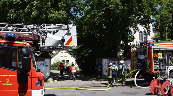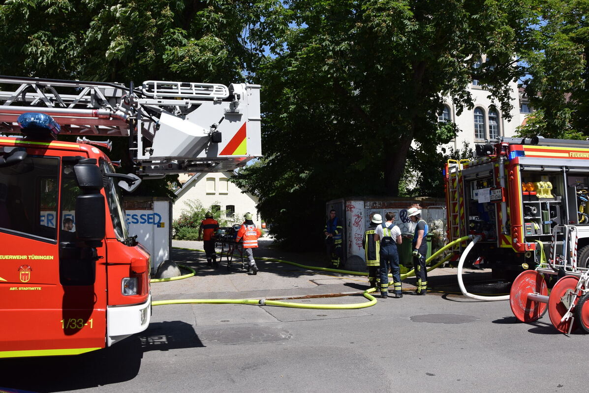 TÜBINGEN. Bewohner gerettet, Feuer gelöscht: Mit einem Großaufgebot von 60 Leuten und neun Fahrzeugen war die Feuerwehr um die Mittagszeit in der Tübinger Schellingstraße im Einsatz.