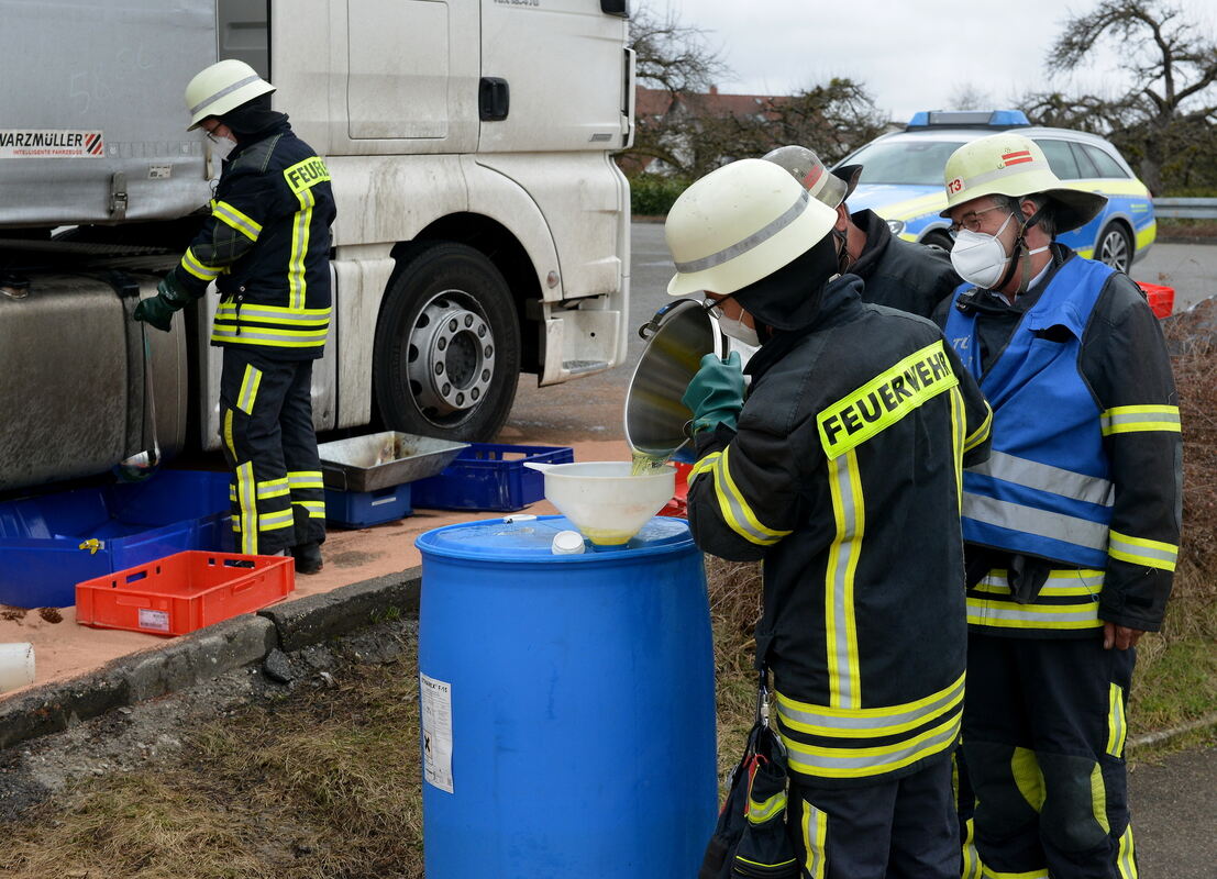 GOMARINGEN/TÜBINGEN. Auf dem Gelände eines großen Supermarktes in Gomaringen ist am Donnerstagmittag der Dieseltank eines Lastwagens aufgerissen worden. Kraftstoff in noch unbekannter Menge trat aus und verteilte sich auf dem Gelände sowie einer angrenzenden Wiese. Auch in die Kanalisation gelangte Dieselöl. Die Feuerwehr war mit 20 Einsatzkräften, sechs Fahrzeugen und einem Gefahrstoffzug vor Ort und konnte eine weitere Ausbreitung des Dieselöls verhindern. Einsatzleiter Gunther Rapp hat dem GEA vor Ort gesagt: »In den Kraftstofftanks des Lkw befanden sich geschätzte 580 Liter Diesel, davon sind möglicherweise 150 bis 200 Liter ausgelaufen. Den Rest konnten wir auffangen und in andere Behälter füllen.« Die Feuerwehr streute Ölbindemittel aus und trug einen Teil der angrenzenden Wiese ab. Das Dieselöl, das in die Kanalisation gelaufen ist, wird von den Wasserwerken in einem Rückhaltebecken aufgefangen und beseitigt.