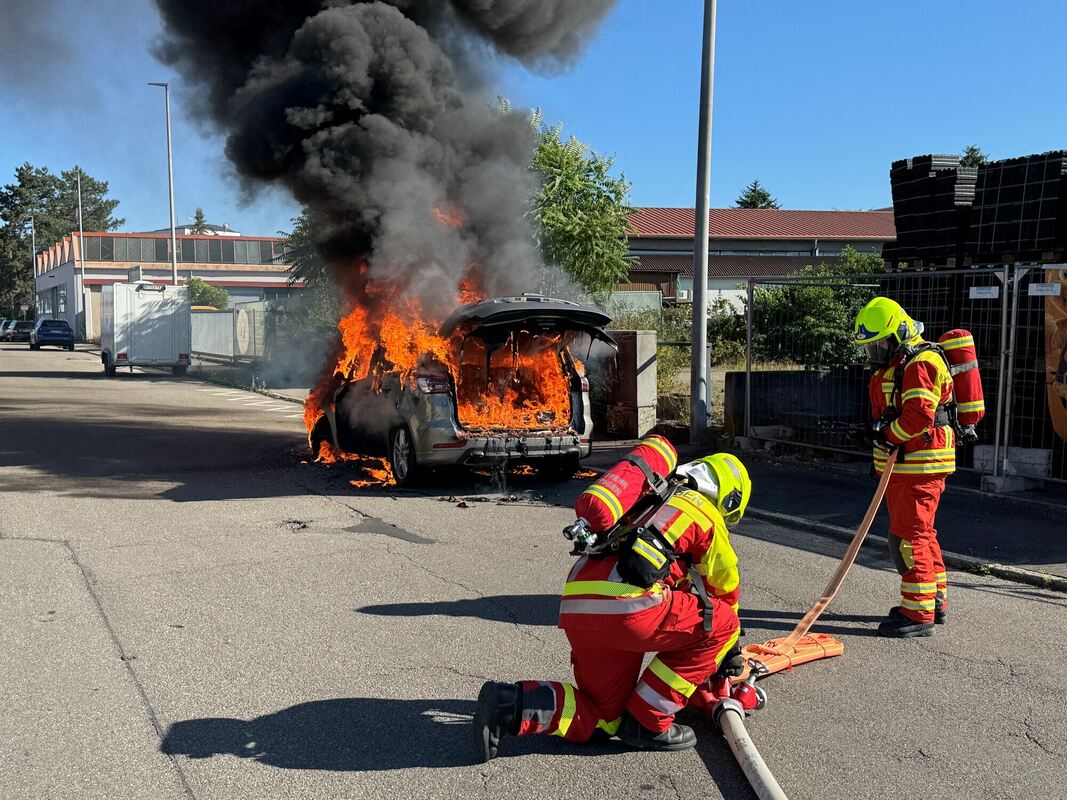 Als die Feuerwehr mit drei Fahrzeugen und zwölf Einsatzkräften eintraf, war die Heckklappe des Autos geöffnet. »Das kam uns seltsam vor«, sagte Holder. Im Auto befand sich glücklicherweise niemand. Eine Familie mit zwei Kindern hatte es geschafft, rechtzeitig das Auto zu verlassen, ohne sich zu verletzen. Nachdem die Feuerwehr rund 15 Minuten im Einsatz war, erschien der Vater, der noch unter Schock war. Er hatte das Feuer noch während der Fahrt bemerkt. Brandursache war wohl ein technischer Defekt.