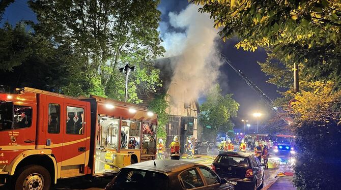 Feuerwehr verhindert Schlimmeres: Fachwerkscheune in Ostfildern in Flammen