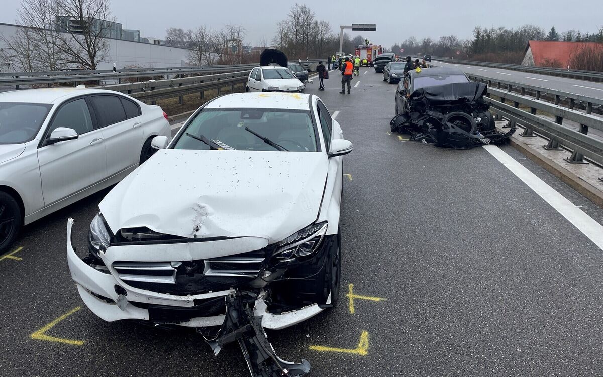 Kurz darauf kam es ein paar Meter hinter dieser Unfallstelle erneut zu einem Auffahrunfall. Ein 32-Jähriger, der in einem Audi auch in Richtung Hausen unterwegs war, erkannte den Rückstau hinter dieser dritten Unfallstelle zu spät und rutschte mit seinem Wagen auf der spiegelglatten Fahrbahn ins Heck eines am Stauende stehenden Seat eines 19-Jährigen. Verletzt wurde niemand, Allerdings waren auch beide Autos so schwer beschädigt, dass sie abgeschleppt werden mussten. Der Sachschaden hier wird auf etwa 21.000 Euro geschätzt.