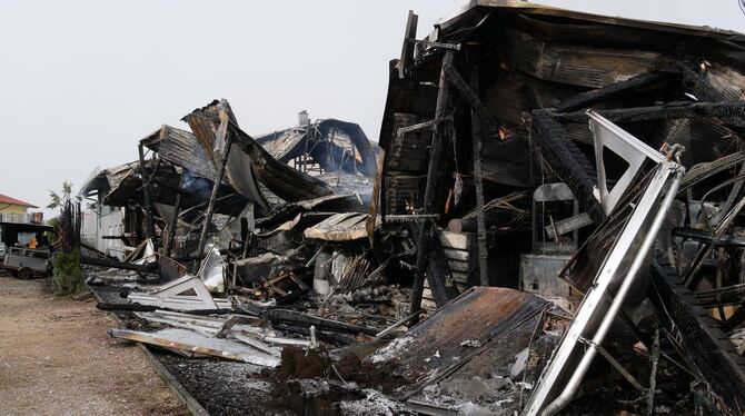 Um kurz nach sechs Uhr wurde der Polizei gemeldet, dass kein offenes Feuer mehr sichtbar sei, sagte ein Polizei-Sprecher auf GEA-Anfrage. Die Feuerwehr zog deshalb einige Einsatzkräfte ab, Nachlöscharbeiten liefen aber den ganzen Vormittag weiter. Am Tag danach zeigte sich die ganze Zerstörungskraft des Flammeninfernos: Die Lagerhalle war schon in der Nacht eingestürzt, das Firmengebäude schwerst beschädigt. An den benachbarten Gebäuden waren zahlreiche Fenster geplatzt und Fassadenteile geschmolzen. Die Feuerwehr konnte das angrenzende Wohnhaus des Firmenbesitzers vor den Flammen retten, es ist allerdings vorerst unbewohnbar. Brand-Experten der Kriminalpolizei untersuchen immer noch die Ursache des Feuers. Es entstand Sachschaden in Millionenhöhe. (and)