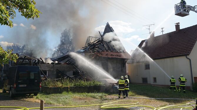 Nach bisherigem Kenntnisstand brach aus noch ungeklärter Ursache der Brand aus und die Scheune sowie Werkstatt brannten bis auf die Grundmauern nieder. Da sich in den Objekten mehrere Zweiräder beziehungsweise Pkw befanden und auch die installierte Photovoltaikanlage komplett zerstört wurde, muss von einem Gesamtschaden in Höhe von etwa 250.000 Euro ausgegangen werden. Die Ermittlungen zur Brandursache dauern an. Starke Kräfte der Feuerwehren aus Münsingen und Laichingen waren vor Ort.
