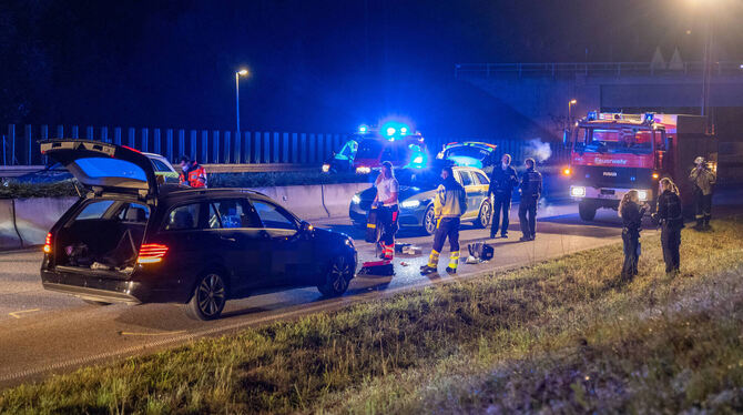Der Taxifahrer erlitt einen Schock und wurde seelsorgerisch betreut. Zur Ermittlung des Unfallherganges wurde ein Gutachter beauftragt. Die Freiwillige Feuerwehr Nürtingen unterstützte die Unfallaufnahme durch Ausleuchten der Unfallstelle mit insgesamt drei Fahrzeugen und acht Einsatzkräften. Des Weiteren befanden sich zwei Rettungswagen und ein Notarzt-Team vor Ort. Zur Unfallaufnahme mussten die beiden Richtungsfahrbahnen voll gesperrt werden. Erst in den frühen Samstagmorgenstunden konnte die Fahrbahn wieder freigegeben werden. (pol)