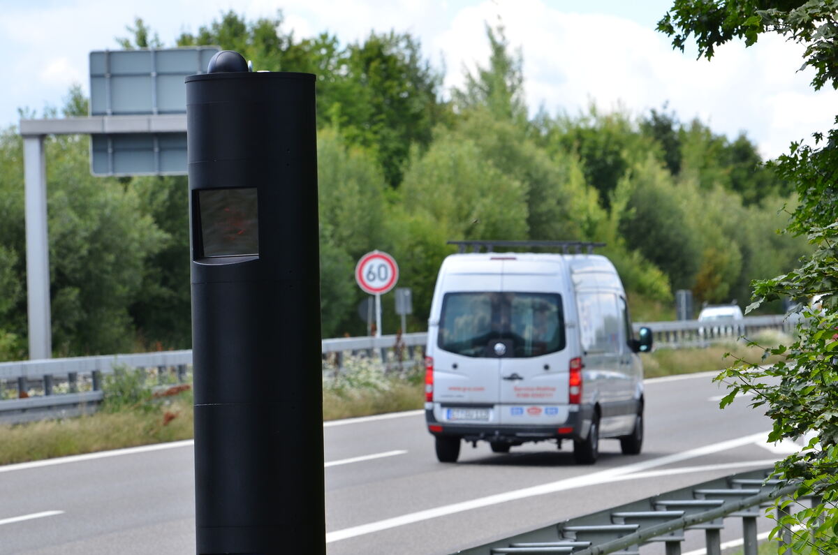 Eine moderne Blitzersäule, hier an der B 27 (Archivbild).