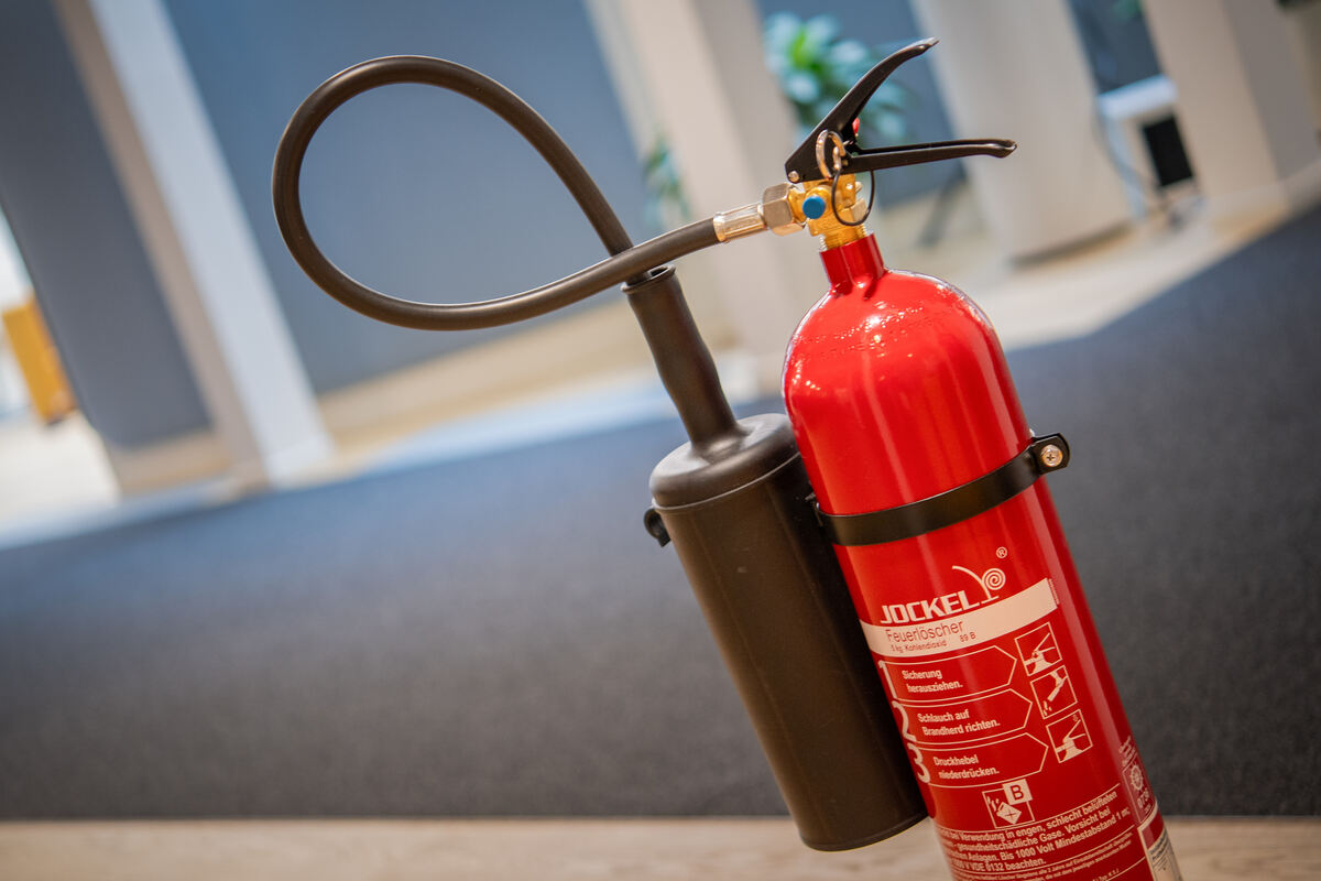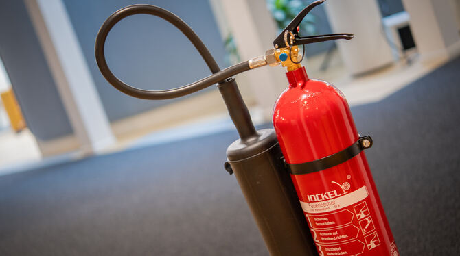 Ein Feuerlöscher in einem Büro. (Symbolbild)