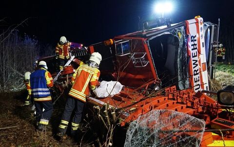 PFRONSTETTEN. Glück im Unglück hatten zwei Feuerwehrmänner der Reutlinger Feuerwehr, die am Mittwochabend kurz nach 20 Uhr mit ihrem Kranwagen auf der Bundesstraße 312 verunglückt sind. Sie wurden bei dem Unfall mit dem 48 Tonner nur leicht verletzt.
