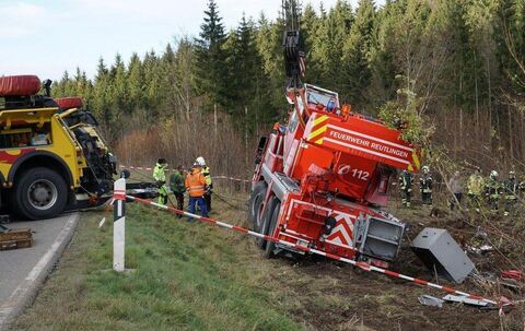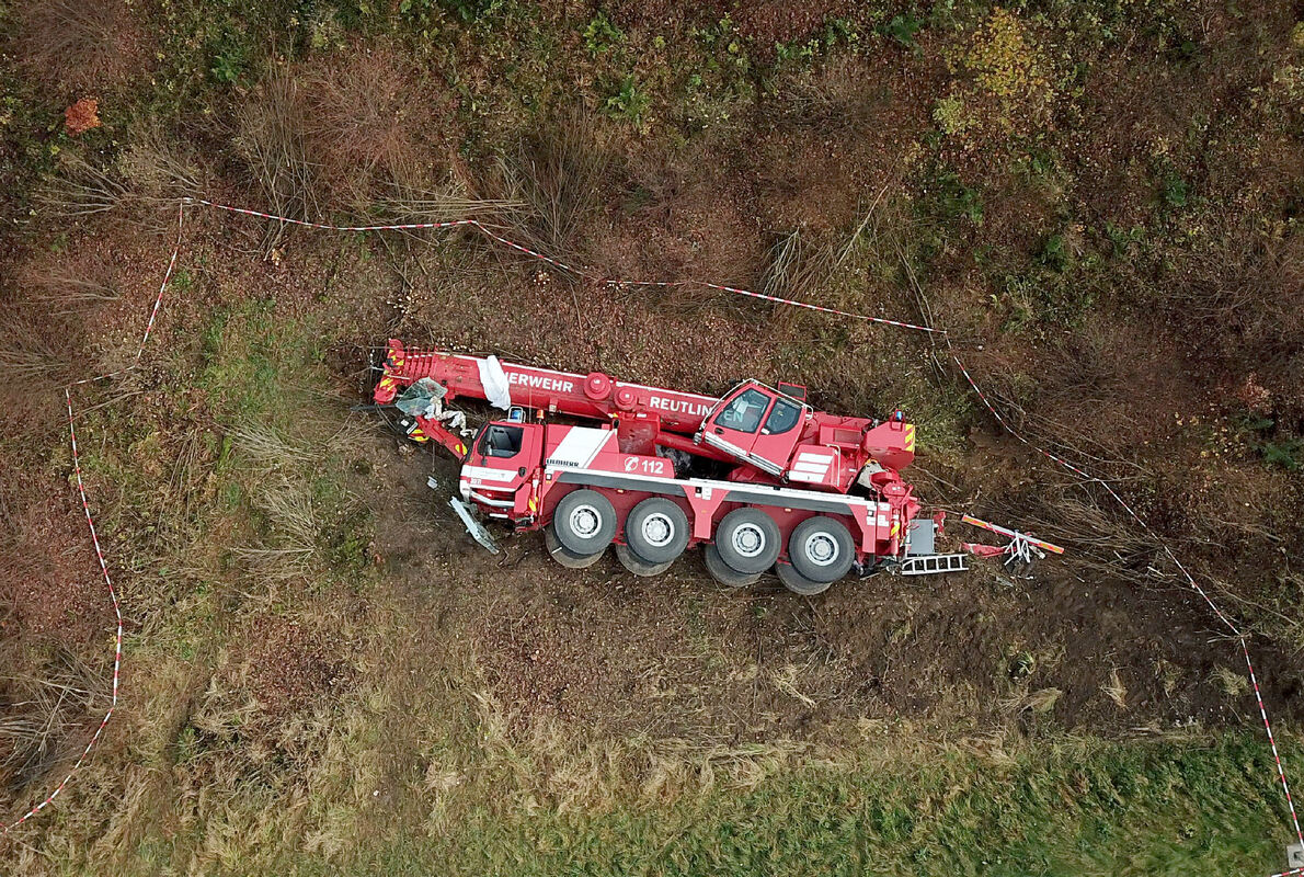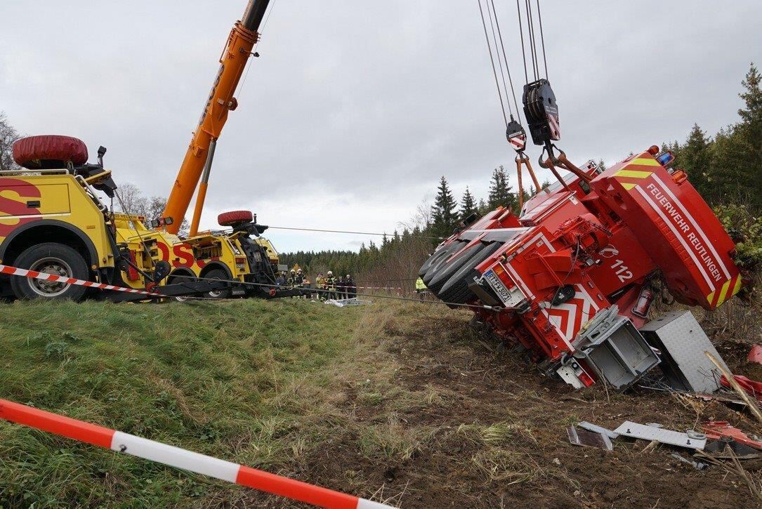 Der Kranwagen war am Mittwoch auf der Rückfahrt von einem Einsatz in der Nähe von Aulendorf (Landkreis Ravensburg), wo er, mit einem zweiten Kranwagen einer privaten Firma, einen verunfallten Propangastank-Lastkraftwagen aufrichten musste. Nach getaner Arbeit machten sich die Reutlinger Feuerwehrmänner auf Richtung Heimat.