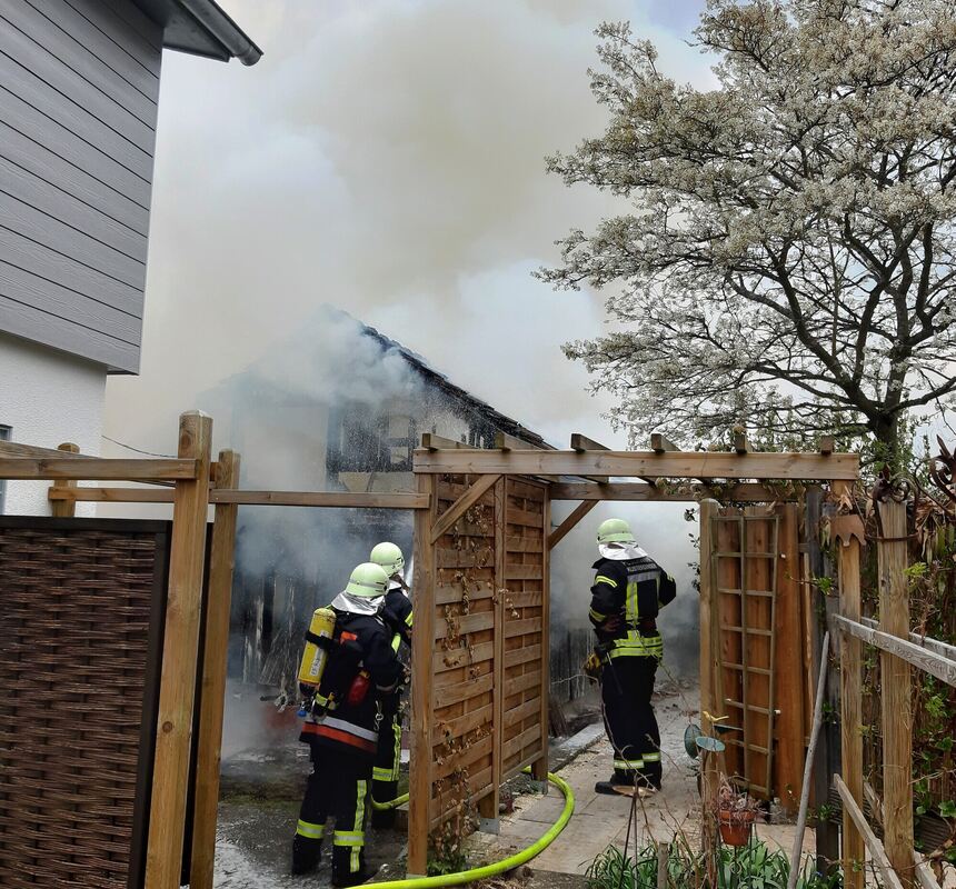 KUSTERDINGEN. Vermutlich auf Grund technischen Defekts an einem Akku ist am Samstagmittag gegen 13.30 Uhr eine Gartenhütte in einem Wohngebiet in Kusterdingen in Brand geraten. Beim Eintreffen der Rettungskräfte stand die zweistöckige Hütte, welche sich im Garten hinter einem Wohnhaus befindet, bereits im Vollbrand.