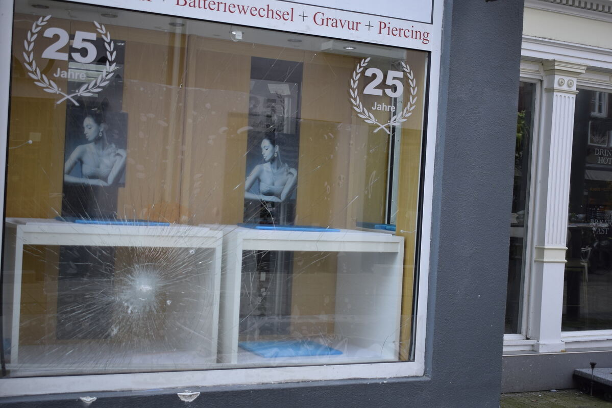 Nachdem die Scheibe seinen Einbruchsversuchen standgehalten hatte, flüchtete er zu Fuß in Richtung Weingärtnerstraße / Stadtbibliothek. Sofort nach der Alarmierung eingeleitete Fahndungsmaßnahmen mit mehreren Streifenwagen verliefen bislang ergebnislos. Der entstandene Schaden an der Verglasung wird auf etwa 15.000 Euro geschätzt.