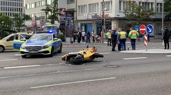 REUTLINGEN. Am Freitagabend ist es in Reutlingen, an der Kreuzung Karlstraße/Eberhardstraße/Unter den Linden, zu einem Verkehrsunfall zwischen einem Motorrad und einem Streifenwagen der Polizei gekommen, bei welchem der Motorradfahrer schwer verletzt wurde.