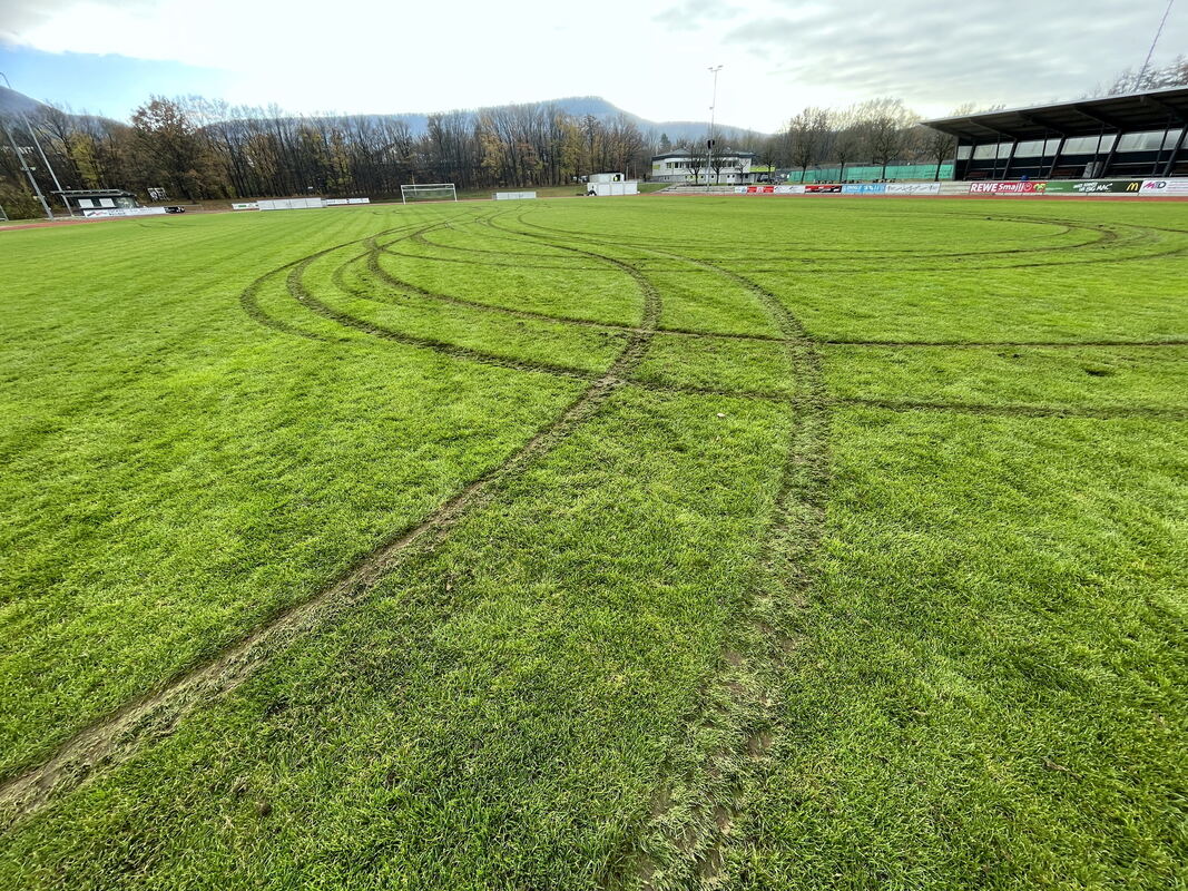 Der Verein und die Stadtverwaltung hatten gemeinsam eine Belohnung von 2.000 Euro ausgesetzt für Hinweise, die zur Aufklärung führen. Zunächst wurden drei Varianten für die Sanierung des Spielfeldes in Betracht gezogen. Nach interner Prüfung habe man entschieden, auf der alten Wurzelschicht des Rasens mit einer Neueinsaat aufzubauen. (GEA)