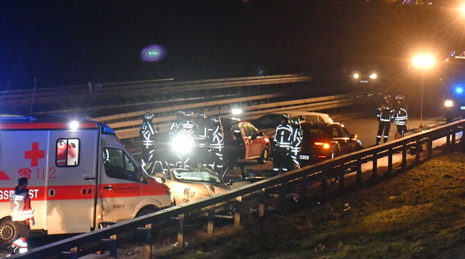 HECHINGEN. Acht Verletzte und Schaden in Höhe von rund 40.000 Euro sind laut Polizeipräsidium Reutlingen die Folgen des schweren Verkehrsunfalls auf der B 27 zwischen den Anschlussstellen Hechingen Mitte und Hechingen Süd. Demnach war ein 35-jähriger Autofahrer kurz vor 17 Uhr mit seinem VW Golf auf der Bundesstraße in Richtung Balingen unterwegs. Dabei kam es auf Höhe eines am rechten Fahrbahnrand abgestellten Pannenfahrzeugs zu einem Auffahrunfall mit dem vorausfahrenden Fiat Punto einer 21-Jährigen. Der Golf prallte anschließend gegen die Leitplanken auf der linken Fahrbahnseite und kollidierte mit einem noch vor dem Fiat fahrenden Dacia. Durch den Zusammenstoß wurde eine 18 Jahre alte Mitfahrerin im Fiat eingeklemmt. Sie wurde von der Feuerwehr befreit und anschließend mit dem Rettungshubschrauber in ein Krankenhaus gebracht. Auch die Fahrerin des Punto und eine 39 Jahre alte Beifahrerin sowie der Golf-Lenker erlitten schwere Verletzungen und kamen mit dem Rettungswagen in die Klinik. Die drei Insassen des Dacia wurden mit Verletzungen noch unbekannten Ausmaßes ins Krankenhaus eingeliefert. Dort wurde vorsorglich auch die 25-jährige Lenkerin des Pannenfahrzeugs, einem VW T-Roc, untersucht. Alle beteiligten Fahrzeuge wurden abgeschleppt. Die B 27 musste in Fahrtrichtung Balingen bis zum Abschluss der Unfallaufnahme und Bergungsarbeiten gesperrt werden. Die Sperrung dauerte bis in den späten Abend. Zeugen, die den Unfall beobachtet haben oder Hinweise zum Unfallgeschehen geben können, werden gebeten, sich unter Telefon 07433/264-0, zu melden. (pol/GEA)