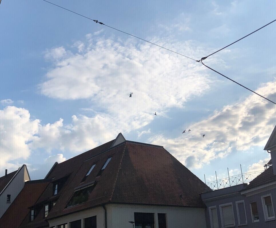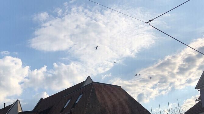 REUTLINGEN. Ein Polizei-Hubschrauber sorgte am Montagabend für Aufsehen in der Reutlinger Innenstadt. Um kurz nach 19 Uhr tauchte der Helikopter mit großem Getöse auf und kreiste kaum zu übersehen und zu überhören mehr als zehn Minuten lang tief fliegend über den Häuserdächern. Was war passiert? »Wir suchen keinen Räuber oder etwas anderes, worüber sich die Bevölkerung Sorgen machen müsste«, gab die Polizeiführerin vom Dienst auf GEA-Anfrage direkt Entwarnung. »Wir suchen nach einer vermissten Person, die sich möglicherweise in einer hilflosen Lage befindet.«