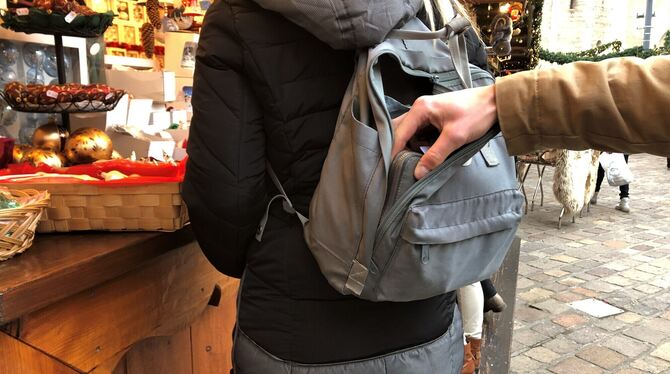 Darauf freuen sich aber nicht nur die Besucherinnen und Besucher, auch Taschendiebe werden von locker in die Gesäßtaschen gesteckten Smartphones oder Portemonnaies, halboffenen Handtaschen, Rucksäcken oder offenen Körben angezogen. Innerhalb von Sekunden verschwinden oft völlig unbemerkt Geldbörsen mit Bargeld, Kreditkarten, oft auch persönlichen Dokumenten oder die Autoschlüssel. Insbesondere Smartphones sind eine häufig gern genommene Beute. Hinzu kommt noch, dass die meisten Menschen mehr Bargeld dabeihaben als üblich. All das macht die Weihnachtsmärkte für Taschendiebe besonders attraktiv. Da der Verlust der Wertsachen häufig erst später bemerkt wird, laufen Fahndungsmaßnahmen nicht selten ins Leere und die Fälle bleiben ungeklärt. Bei der Zahl der Taschendiebstähle geht das Polizeipräsidium Reutlingen von einer höheren Dunkelziffer aus und teilte dem GEA mit: »Wir raten in jedem Fall immer zur Erstattung einer Anzeige bei der Polizei, denn jeder Fall und der damit verbundene Ärger, gerade bei der Wiederbeschaffung von Dokumenten und der finanzielle Verlust, ist ein Fall zu viel.«