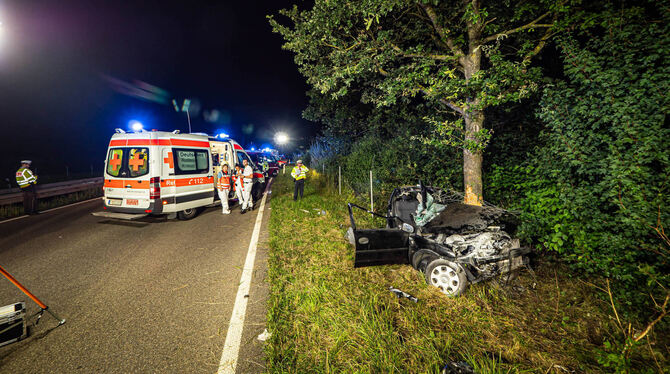 KUSTERDINGEN. Zu einem Verkehrsunfall mit einem Schwerverletzten ist es in der Nacht von Freitag auf Samstag um 0 Uhr auf der B28 von Reutlingen in Richtung Tübingen gekommen. Ein 22-jähriger Opel-Fahrer kam in einer langgezogenen Rechtskurve vermutlich auf Grund Unachtsamkeit zu weit in die Nähe der Mittelleitplanke. Er übersteuerte sein Fahrzeug, geriet ins Schleudern, kam auf Höhe der Erddeponie nach rechts von der Fahrbahn ab und prallte gegen einen Baum.