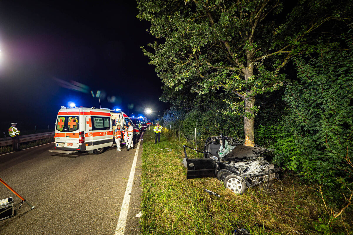 Der 22-Jährige wurde in seinem völlig demolierten Fahrzeug eingeklemmt und musste durch die Feuerwehr gerettet werden. Er wurde vor Ort notärztlich versorgt und mit lebensgefährlichen Verletzungen in eine Klinik gebracht. Die Feuerwehr war mit insgesamt 5 Fahrzeugen und 25 Mann, der Rettungsdienst mit 5 Fahrzeugen und 9n Einsatzkräften vor Ort.