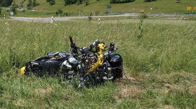GOMADINGEN. Zu einem folgenschweren Verkehrsunfall mit zwei Toten ist es am Sonntagmittag, um 13.20 Uhr, auf der Landesstraße 230 Höhe Gomadingen gekommen. Eine 25-Jährige war mit ihrem Motorrad Suzuki in einer Gruppe von vier Fahrern in Fahrtrichtung Münsingen unterwegs. Als letzte ihrer Gruppe überholte sie einen vorausfahrenden Renault Traffic, der von einer 49-Jährigen gelenkt wurde. Während des Überholvorgangs kollidierte sie frontal mit einem entgegenkommenden 66-Jährigen, der als Erster einer fünfköpfigen Gruppe mit seinem Motorrad Yamaha in Richtung Reutlingen unterwegs war. Trotz sofort eingeleiteter Rettungsmaßnahmen durch den Rettungsdienst, der mit drei Rettungswagen, einem Notarzt, einem organisatorischen Leiter und einem Rettungshubschrauber vor Ort war, erlagen beide Motorradfahrer an der Unfallstelle ihren Verletzungen. Die Motorradgruppen mussten anschließend durch den Nachsorgedienst betreut werden. Die Feuerwehr war ebenfalls mit zwei Fahrzeugen und 12 Einsatzkräften vor Ort. Die Unfallaufnahme wurde durch Spezialisten der Verkehrspolizei übernommen, und auf Anordnung der Staatsanwaltschaft wurde auch ein Gutachter hinzugezogen. Während dieser Zeit war die L230 voll gesperrt. Die Sperrung dauert derzeit (Stand 17.00 Uhr) noch an. Die Straßenmeisterei richtete eine örtliche Umleitung ein. Beide Motorräder mussten durch einen Abschleppdienst versorgt werden, der Schaden beläuft sich auf ca. 10.000 Euro. (pol)