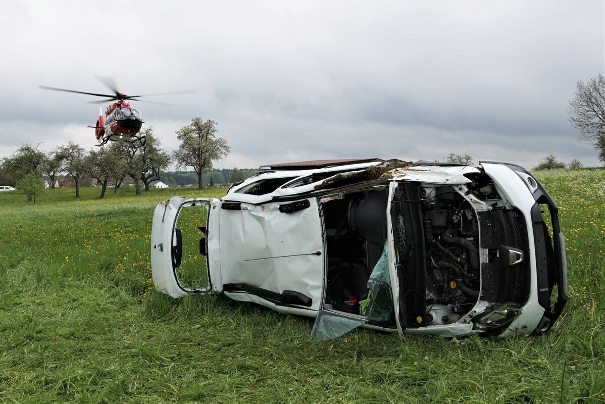 HOHENSTEIN. Ein schwerer Verkehrsunfall hat sich am Sonntag um 10.05 Uhr auf der L248 ereignet. Die 32 -jährige Fahrerin eines Pkw Dacia Sandero fuhr von Ödenwaldstetten in Richtung Bernloch. In einer langgezogenen Rechtskurve kurz vor Bernloch kam sie aus bislang ungeklärter Ursache nach rechts von der Fahrbahn. In der Folge überschlug sich der Pkw zweimal und blieb auf einem Wiesengelände auf der linken Fahrzeugseite liegen. Die 32-Jährige erlitt, ebenso wie ihre mitfahrende 5-jährige Tochter schwere Verletzungen. Beide wurden jeweils mit einem Rettungshubschrauber zur weiteren Versorgung in eine Klinik geflogen. Neben der Polizei waren die Feuerwehren aus Ödenwaldstetten, Bernloch und Engstingen mit insgesamt vier Fahrzeugen und 25 Einsatzkräften vor Ort. Der Rettungsdienst hatte neben den beiden Rettungshubschraubern einen Rettungswagen, ein Notarztfahrzeug sowie einen organisatorischen Leiter im Einsatz. An dem Pkw Dacia Sandero entstand wirtschaftlicher Totalschaden in Höhe von 15.000 Euro. Die L248 war während der Unfallaufnahme und der Versorgung der Verletzten voll gesperrt, eine örtliche Umleitung war eingerichtet. Größere Verkehrsbehinderungen ergaben sich nicht. (pol)