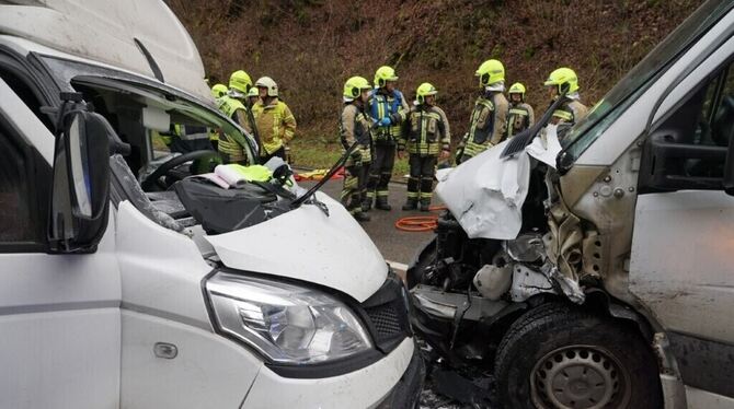 MÜNSINGEN. Bei einem Verkehrsunfall, der sich am Montagmorgen, kurz nach 11 Uhr, auf der Seeburger Steige ereignet hat, gab es nach GEA-Informationen einen Schwerverletzten. Im Kurvenbereich waren auf der Bundesstraße 465 zwei Transporter zusammengestoßen. Zur Unglücksursache gibt es noch keine Informationen. Es sind, neben der Polizei, zwei Notärzte, zwei Rettungstransportwagen und Einsatzkräfte der Bad Uracher und der Münsinger Feuerwehr vor Ort.