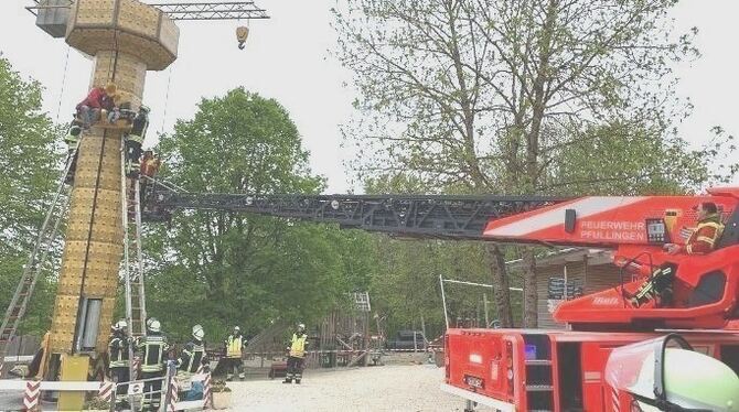 Etwas schwieriger gestaltete sich laut Sprecherin die Rettungsaktion an dem Kran: Wegen des Stromausfalls wurde dort automatisch eine Sturzabsicherung ausgelöst. Die vier Fahrgäste, darunter auch ein Kind, steckten deswegen für etwa 50 Minuten in rund sieben Metern Höhe fest. Die Feuerwehr Pfullingen befreite sie schließlich mittels Drehleiter. (GEA/dpa/pol)