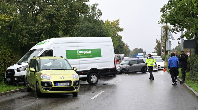 REUTLINGEN. Am Mittwochnachmittag ist es auf der B28 in Reutlingen zu einem Verkehrsunfall mit insgesamt fünf beteiligten Fahrzeugen gekommen. Die 58-jährige Lenkerin eines Mini Coopers befuhr um ca. 17.10 Uhr die B28 von Metzingen kommend in Richtung Reutlingen, berichtet die Polizei. Auf Höhe des Ortseinganges Reutlingen kollidierte die Fahrzeuglenkerin beim Fahrstreifenwechsel mit dem 35-jährigen Lenker eines Mercedes-Benz Sprinters. Durch die Kollision kam es zu weiteren Zusammenstößen zwischen dem PKW der 58-Jährigen und einem 45-jährigen VW-Lenker sowie zwischen dem Sprinter und dem Skoda eines 52-Jährigen bzw. einer 76-jährigen Citroen-Lenkerin. Die 58-jährige Fahrerin des Mini Coopers wurde vor Ort vom Rettungsdienst behandelt. Sie wurde mit leichten Verletzungen in ein Krankenhaus verbracht. Die anderen Unfallbeteiligten blieben glücklicherweise unverletzt.