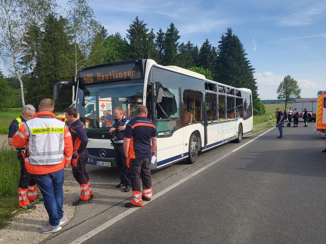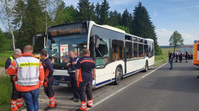 Der Lastkraftwagen hat dabei die linke Seite des Busses touchiert, der in der Gegenrichtung von Gammertingen nach Reutlingen unterwegs war. Dem Vernehmen nach wurde ein Passagier aus dem Bus geschleudert, der sich dabei so schwer verletzte, dass er wenig später mit dem Rettungshubschrauber in eine Klinik geflogen werden musste. Sowohl der 49-jährige Busfahrer, als auch der Lkw-Lenker, dessen Fahrzeug im linken Seitenstreifen zum Stehen kam, und sieben Fahrgäste wurden bei dem Unfall leicht verletzt, teilte Götz Vedder, der Organisatorische Leiter des Rettungsdienstes, vor Ort mit. Nach Angaben der Polizei war der Lkw-Fahrer 81 Jahre alt.