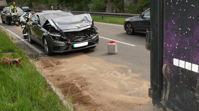 MÜNSINGEN. Ein Leichtverletzter und ein Sachschaden von geschätzten 12.000 Euro sind die Folgen eines riskanten Überholmanövers am Montagvormittag auf der L230 zwischen Münsingen und der Abzweigung nach Steingebronn. Das berichtet die Polizei. Ein 26-Jähriger war gegen 10.45 Uhr mit seinem Mercedes auf der Landesstraße von Münsingen herkommend in Richtung Marbacher Dreieck unterwegs. Im Verlauf einer langgezogenen Links-Rechts-Kurvenkombination überholte er eine Fahrzeugkolonne mit einem Sattelzug als Frontfahrzeug, obwohl er den Verlauf der Strecke nicht vollständig einsehen konnte.