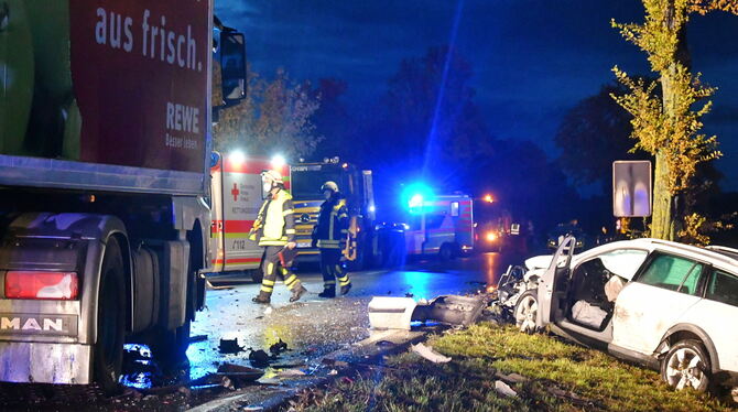 Nach derzeitigem Ermittlungsstand der Polizei befuhr der 22 Jahre alte Fahrer eines VW Golf die B 27 in Fahrtrichtung Balingen als er kurz vor Ofterdingen vermutlich infolge alkoholischer Beeinflussung nach rechts von der Fahrbahn abkam. Beim Versuch gegenzusteuern geriet er nach links auf die Gegenfahrspur, wo er zunächst mit dem entgegenkommenden Pkw Skoda Octavia eines 51-Jährigen kollidierte. Der Skoda wurde hierdurch nach rechts abgewiesen und prallte gegen einen neben der Fahrbahn befindlichen Baum. Der VW Golf hingegen verblieb in einer Drehbewegung auf der Fahrbahn. Ein aus Richtung Balingen heranfahrender 30-jähriger Sattelzuglenker erkannte die Gefahrensituation und wollte dem verunfallten VW noch nach links ausweichen, was ihm aber nicht gelang. So kam es zu Kollision zwischen dem Sattelzug der Marke MAN und dem VW, in dessen Folge der VW in seine ursprüngliche Fahrtrichtung nach rechts abgewiesen wurde und dort neben der Fahrbahn schließlich zum Stillstand kam.