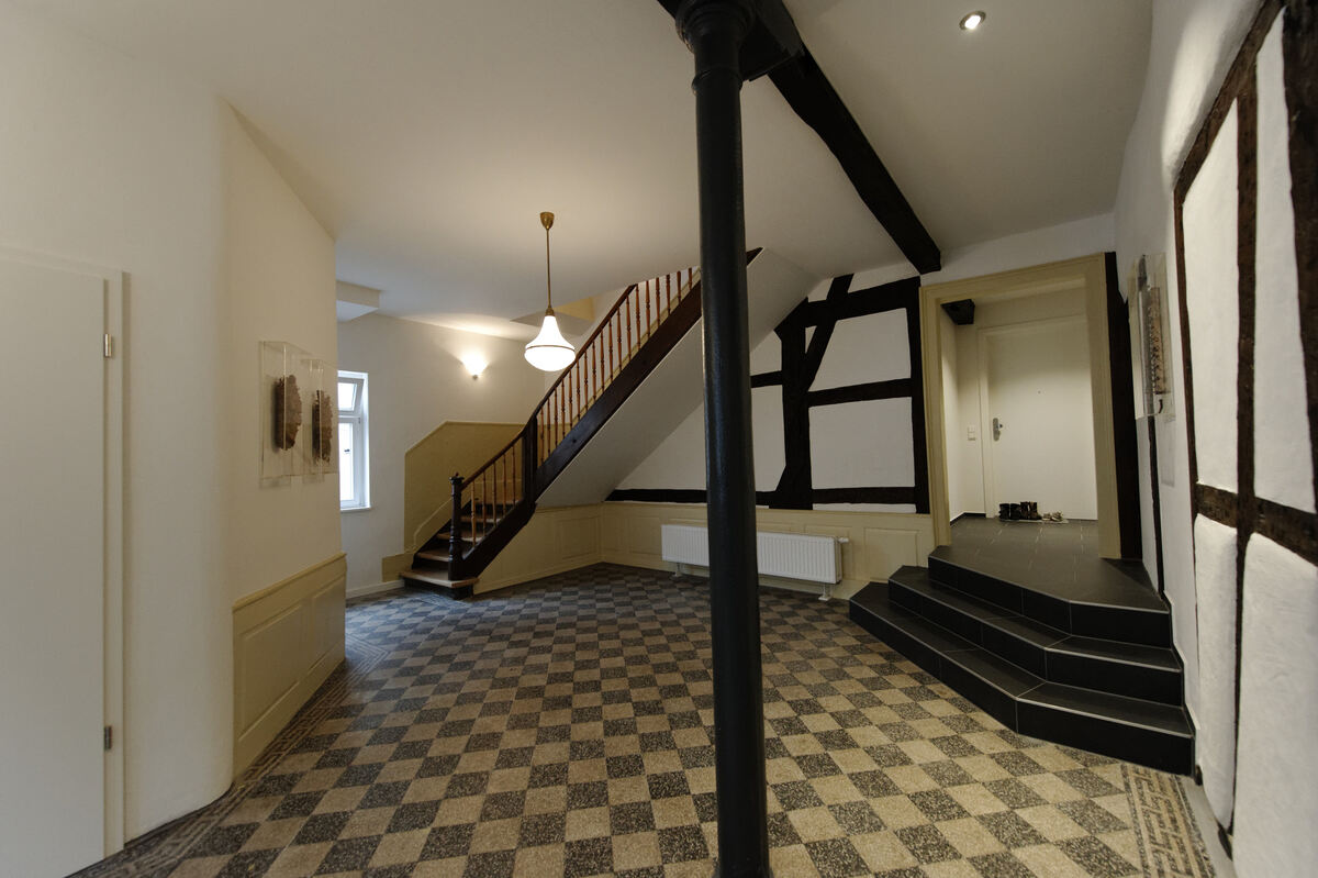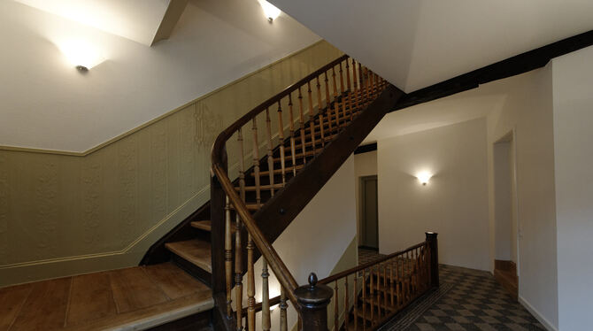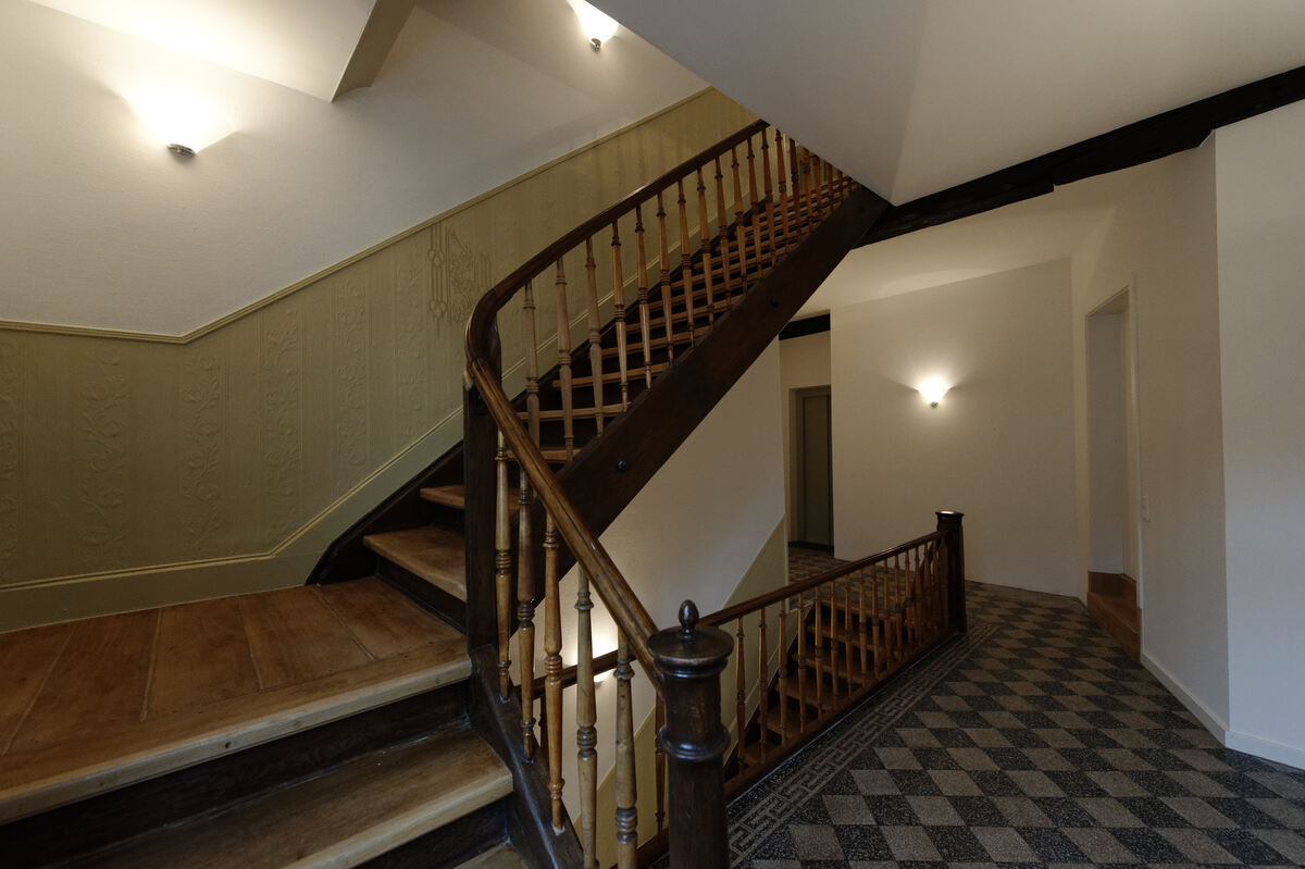Dabei wurde auf die Wiederherstellung der überlieferten Fassade genauso geachtet wie auf die Erhaltung des ursprünglichen Treppenhauses mit Holzgeländer und originalen Bodenfliesen.
